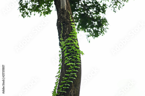 A parasitic vine wrapped around a tree to rely on water and sunlight for living, the concept of life depends on each other.